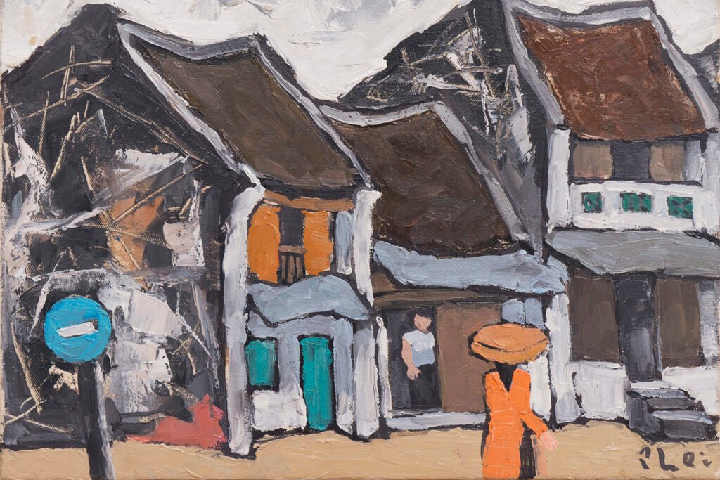 Despite his intimate familiarity with the city, Phái rarely painted outdoors. Instead, he relied on memory, treating each canvas as a dialogue with his beloved Hanoi.