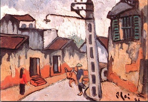 Bùi Xuân Phái, one of Vietnam’s most celebrated painters, was born in Kim Hoàng Village, Vân Canh Commune, Hà Tây Province (now part of Hà Nội – Hanoi). His birthplace was renowned for its traditional Kim Hoàng woodblock paintings, a cultural heritage that likely influenced his artistic sensibilities. Despite these rural roots, Phái grew up in a middle-class family in Hanoi, living first on Hàng Thiếc Street and later moving to 87 Hàng Bút Street, now Thuốc Bắc Street.