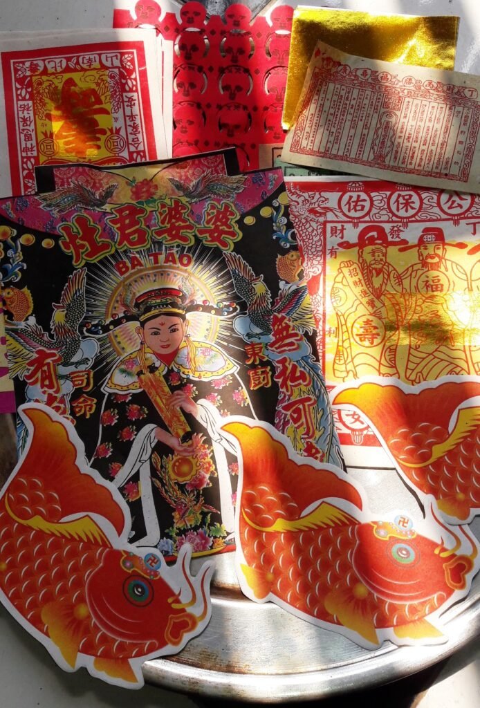 2. Paper Offerings: Paper effigies of the Kitchen Gods and their clothing are burned as symbolic offerings.