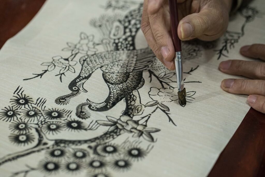 The history of Đông Hồ painting dates back to the 17th century, although some speculate it could be even older. Situated along the Đuống River, Đông Hồ village became famous for its unique style of printmaking. The craft was traditionally passed down through generations, with families in the village dedicating themselves to this meticulous art.