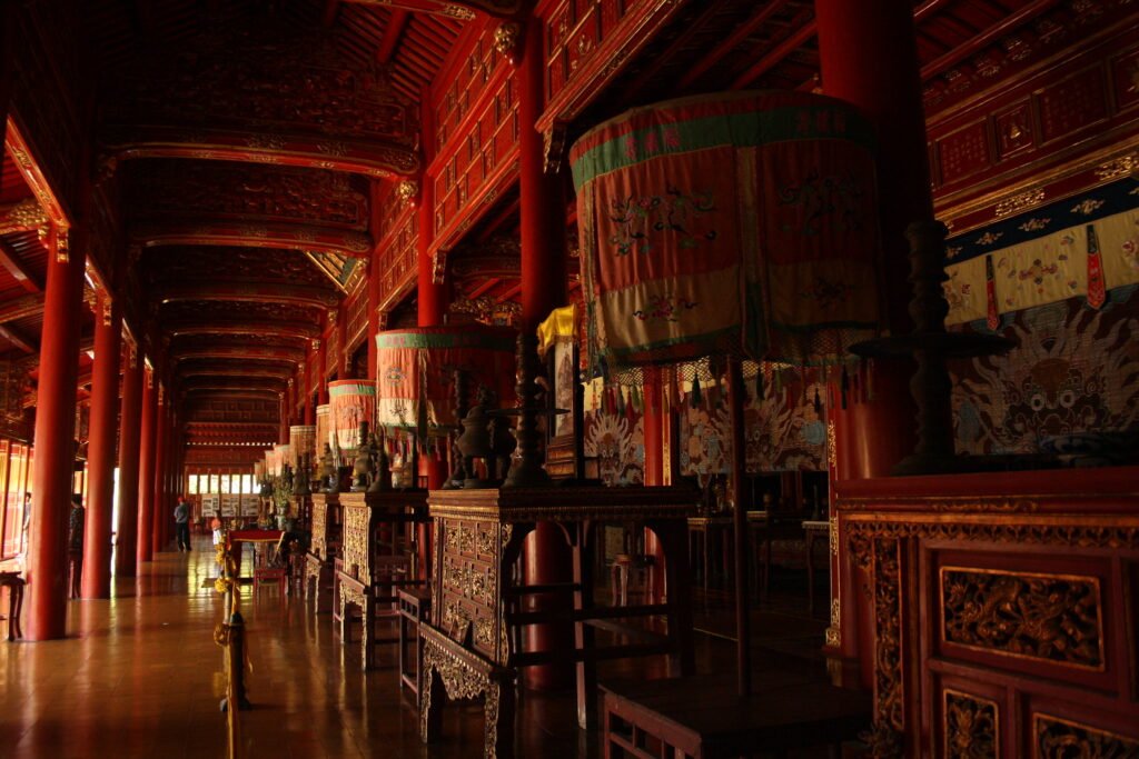 The Thai Hoa Palace (Palace of Supreme Harmony) is one of the most notable buildings in the Imperial Enclosure. It served as the main hall for official ceremonies, where the emperor would meet with his ministers and officials. The architecture of the Thai Hoa Palace is exemplary, with its red lacquered columns, golden details, and intricate dragon motifs symbolizing the emperor’s divine right to rule.
