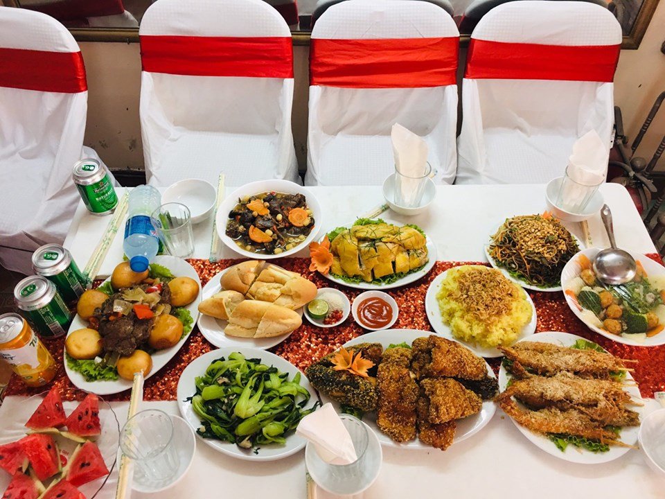 Desserts: The final touch is a selection of fresh fruits, sweet cakes, and che (sweet soup), leaving guests with a delightful end to the celebration.